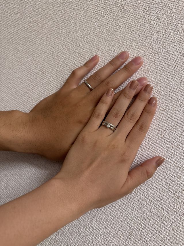 2人だけの指輪がよかったので、内側に重ねると絵になる刻印を入れました。完成後に中を見てくっついたのをみると自分たちだけの指輪という感じで嬉しかったです!中のイニシャルなど刻印も様々なフォントから選ぶことができました!