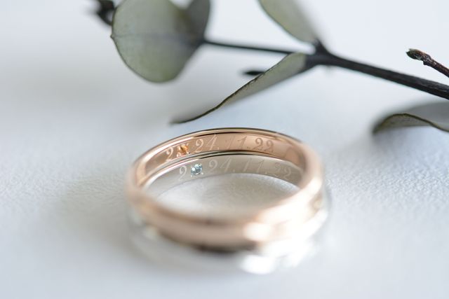 裏側には入籍日の日付、入籍する月の誕生石(ブルートルマリン、シトリン)、2人で重ねるとできるハートの形を入れていてかわいらしいです!