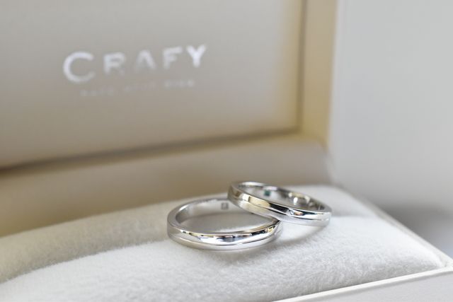 シルバーアクセサリーっぽく、かっこいい指輪にしたいという2人の同じ思いから、シンプルで角張った指輪にしました!マットな面をもうけることで、渋みを出すことを意識しています。余計なデザインはなく、かなり洗練されていると思っています。