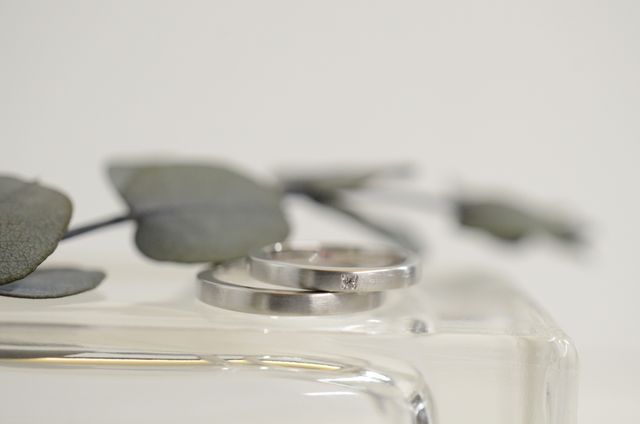 一生身につけるものということでプラチナを選択しました。シンプルで、光りすぎないものが良かったのでヘアライン加工でくすみ加工をしています。また手作りということで愛着が湧きます。特典で3つ誕生石を入れることができたので、内側には刻印とお互いの誕生石を入れました。