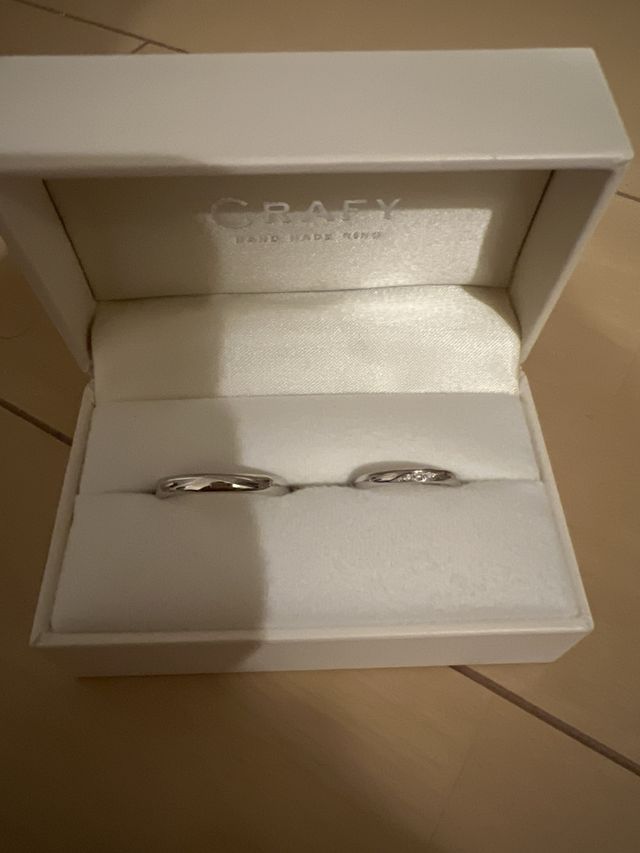 素材はプラチナ、価格は2人で15万円くらいでした。