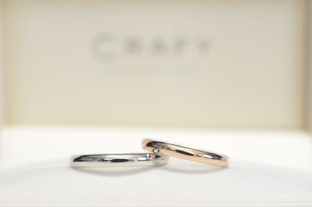 シンプルで一生飽きないデザインが良かったため。当初は彫金を希望していたが、ワックス加工の方が出来上がりのクオリティが高いため満足のいく仕上がりとなった。またピンクゴールドの色味も理想的な綺麗な色だっだ。
