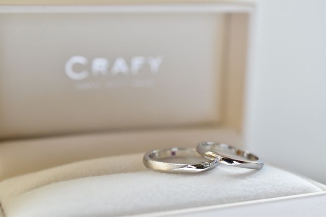 自分の好みに通りにデザインを組み合わせることができました。選ぶ楽しさ、作る楽しさ、両方あり良い思い出となりました。不器用なこともあり、完成した実物を見るまで不安でしたがきちんと形になっており安心しました。センター部分はそのままに、他の周囲は傷を入れ加工しました。石を3つプレゼントしていただけたので、女性側は外に1つ内に1つ、男性側は内に1つそれぞれ誕生石を付けました。