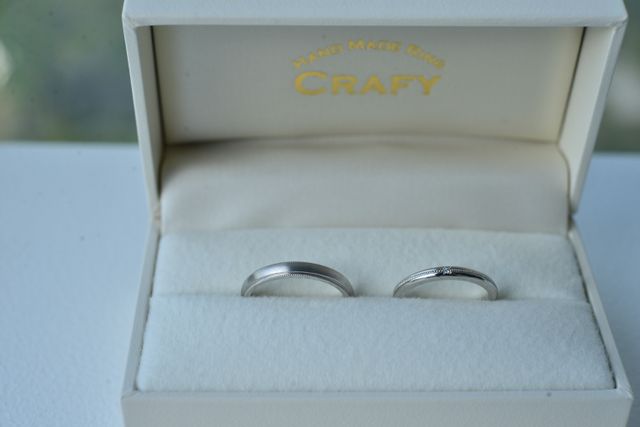 さらにハートの裏掘り等、その場で希望を伝えたデザインについても実現させていただき、世界に一つの指輪を手作りすることができました!
