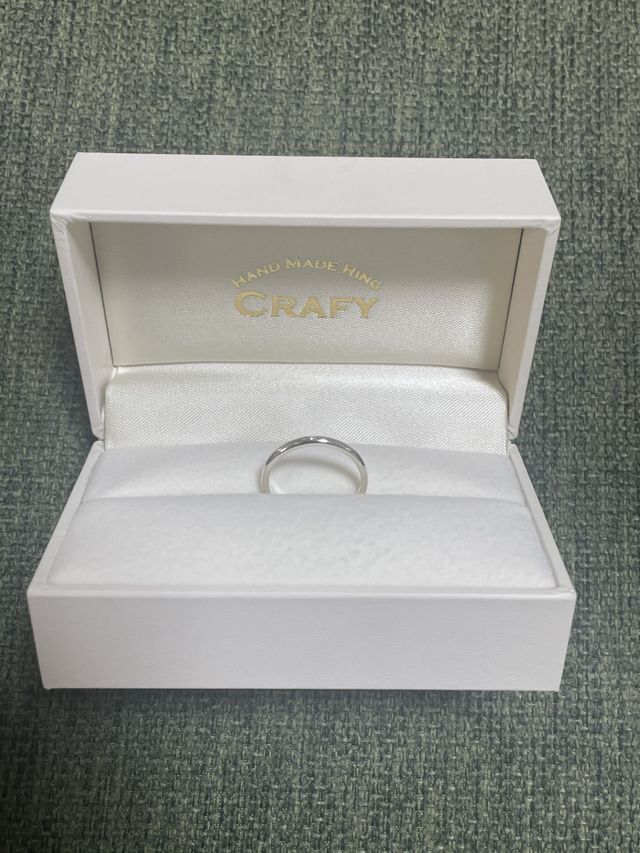 私達夫婦は他人と被るような物が好きではなくて、ブランドの結婚指輪を買うのではなく、2人で作って2人だけのデザインができるハンドメイドが良いとなりこちらの指輪にしました。お店は私の誕生日の日にサプライズで夫が予め探して一年半かけて決めたのがCRAFYのようでした。