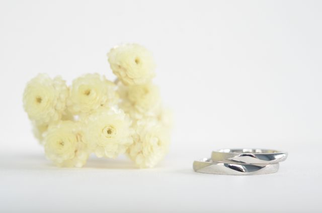 2人でデザインを決めて、作りました。素材はピンクゴールドやイエローゴールドなどから選ぶことができましたが、耐久性や見た目の美しさからプラチナを選びました。ずっとつけていられるようなシンプルなデザインにしました。
