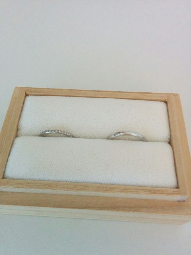 たまたま入った円山のお店で北鹿さんの指輪をはじめてみた時に私も主人も繊細で美しい槌目に一目惚れ。一つのプラチナの塊から、二人の指輪を鍛造で作り出す職人技。制作工程も見せていただき、世界にひとつだけのものを作っていただけると大興奮でした。