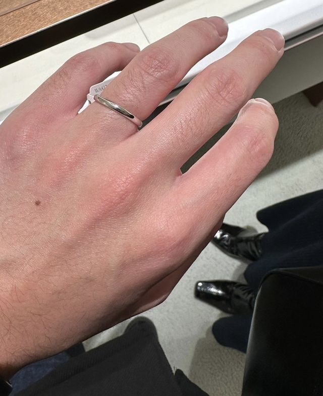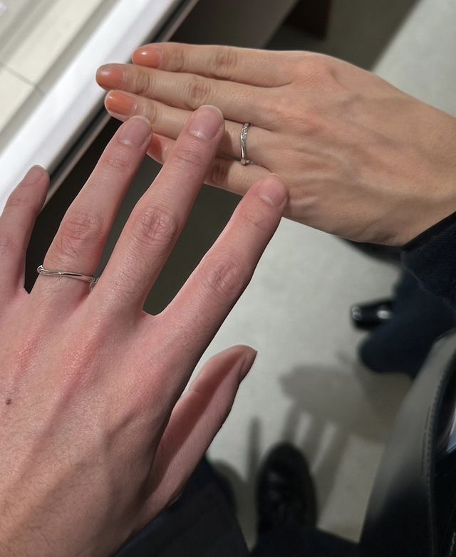 着け心地の良さ、シンプルながらもアクセントのあるデザインに惹かれて決めました。ずっと着けるものなので、新郎新婦ともに飽きずに着けやすいデザインにするこ
