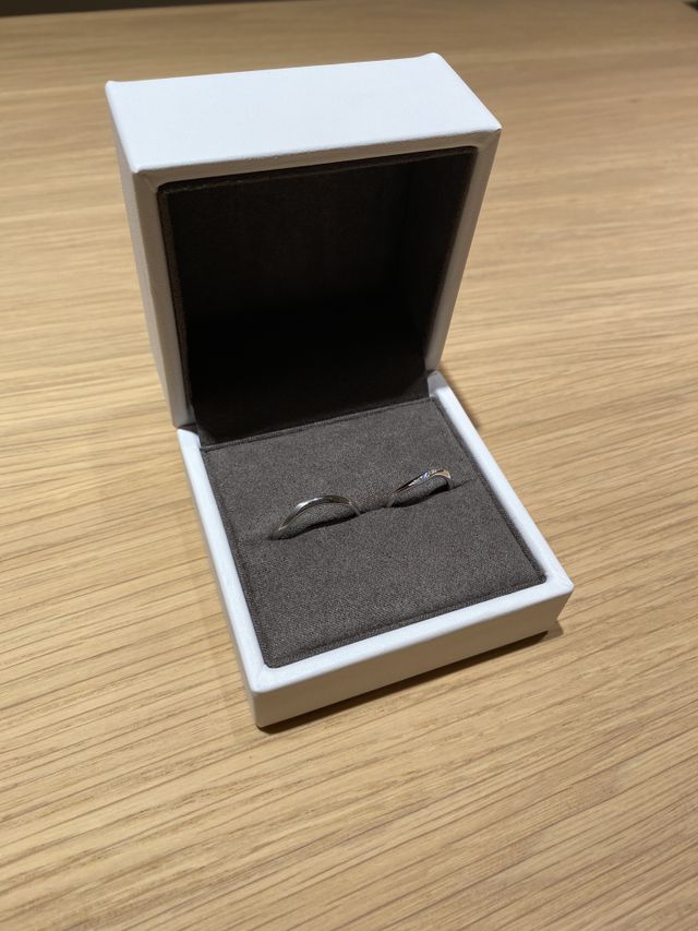 シンプルだけど、他と少し違うものがあったらいいなと思っていたので、それにちょうどいいものが見つかりました!それぞれお互いの指に合うものがペアであったので、満足です。すごく素敵な指輪を作っていただきました!