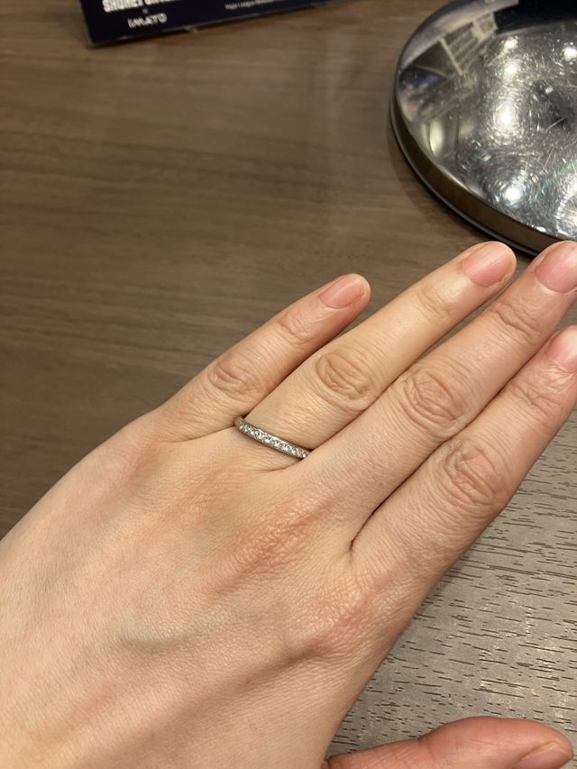 ハーフエタニティで探していました。シンプルなデザインで金額も20万円以内でしたので、妥当なところかなと思いました。決め手とまではいかなかったため、一旦検討することにしました。決して高くも悪くもないと思います。