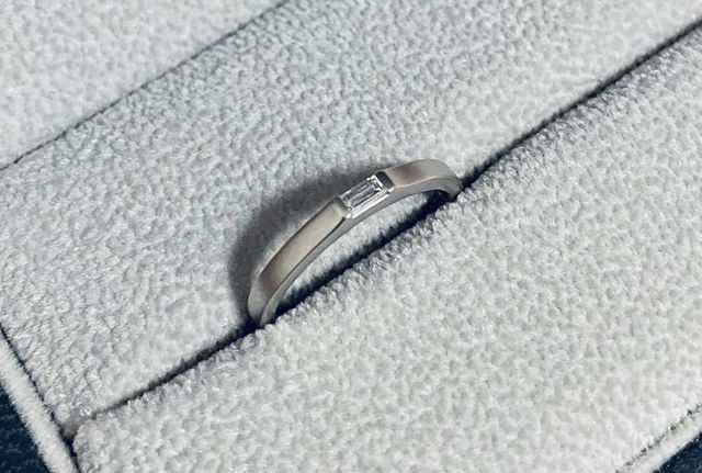 他の指輪とは違いダイヤが四角くカットしてあるものが珍しく、シンプルであきがこないデザインが決め手でした。また、セミオーダー出来る所が良かったです。材質や仕上げの方法を変更しました。こだわりのある方にはオススメです。