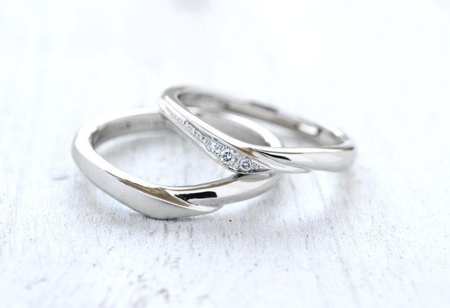 自分達の指の形や手の形にあったデザインを探していました。指輪自体は、外すこともあることを考慮して、つけ外ししやすい丸みのある形のものを選びました。また、ダイヤがついているものが良かったのでダイヤがあるものは必須にしました。