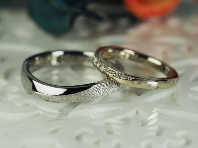 自分たちだけで決めたデザインにできたので、とても満足しました。最初はプラチナ一択でしたが、ゴールドもたくさんの種類があることを知り、私はシャンパンゴールド、夫はブラックゴールドにし、人と被らないデザインにすることができました。