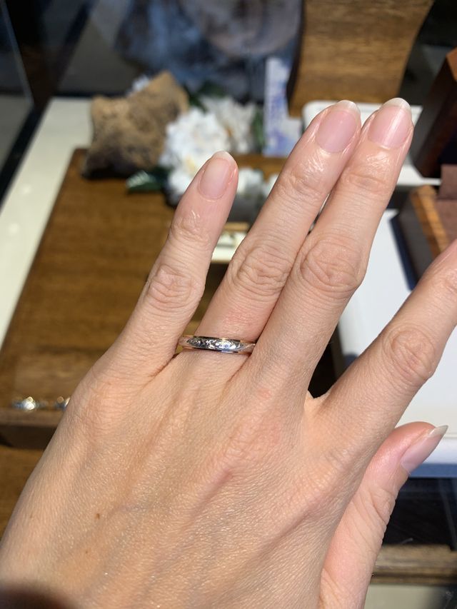 人とは少し違ったデザイン性のある指輪を探している人にはぴったりだと思った。婚約指輪との重ね付けを前提に探していたが、予想外にシンプルな婚約指輪との相性も抜群だった。おしゃれでカジュアルな雰囲気でよかった。