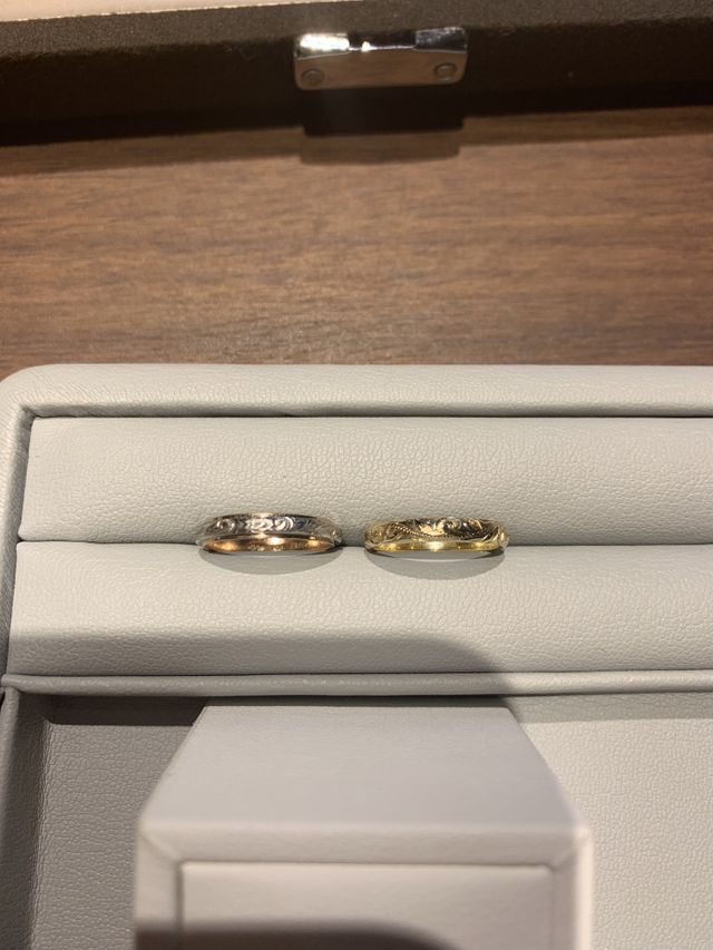 何より自分達の好みで指輪のデザイン、色、プラチナ、シルバー等素材も選ぶことができ、人とは被らずオリジナルな指輪を作れるところが好印象だった。