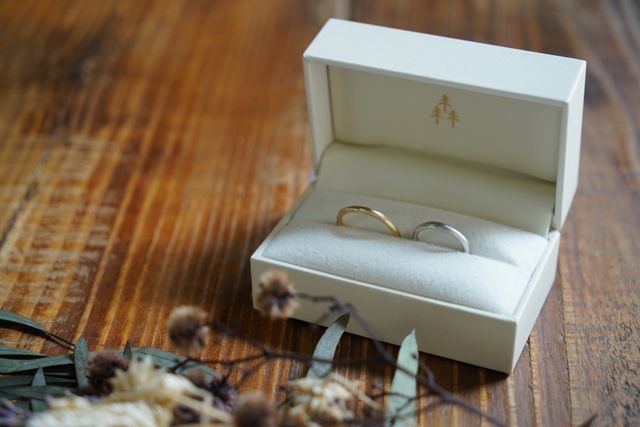 丸みがありシンプルなストレート。手作り感とマットな仕上がりが味がありとてもかわいいです。オーナーさんの提案もあり、お互いの指輪を作成。私の雑さと相手の器用さが溢れ出る指輪になりました。指輪の内側には入籍日とイニシャルを刻印しとても満足です。
