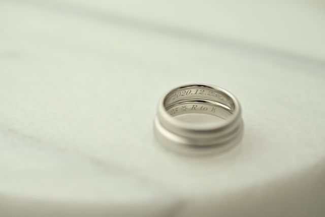 内側の刻印は入籍の日とイニシャルにしました。