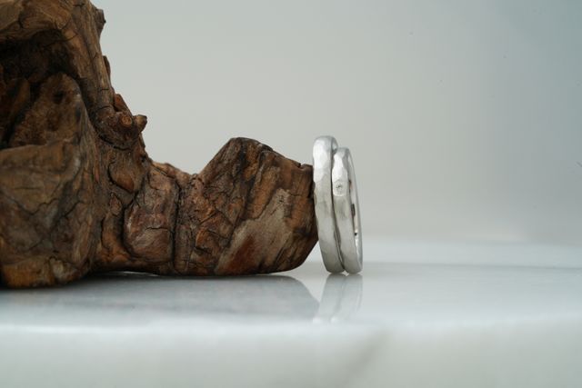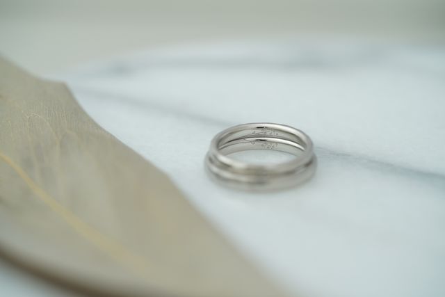 指輪のデザインをふたりで何度も話し合った結果、世界で私たちふたりにしか作りだせない形の結婚指輪が良いとなり、手作りの質感が伝わるデザインとしました。制作の際には、言葉で伝わりにくいようなニュアンスをしっかりと汲み取っていただき、思いどおりの形を作ることができました。ふたりの思い入れがあるオリジナル刻印については細かな注文まで反映していただき、特別感が増してオンリーワンな最高の形の結婚指輪となりました。