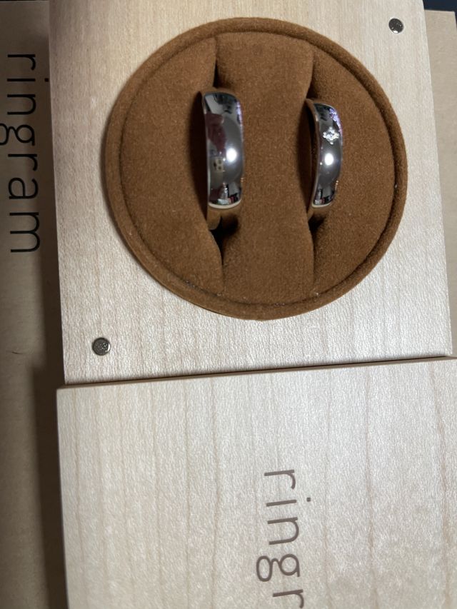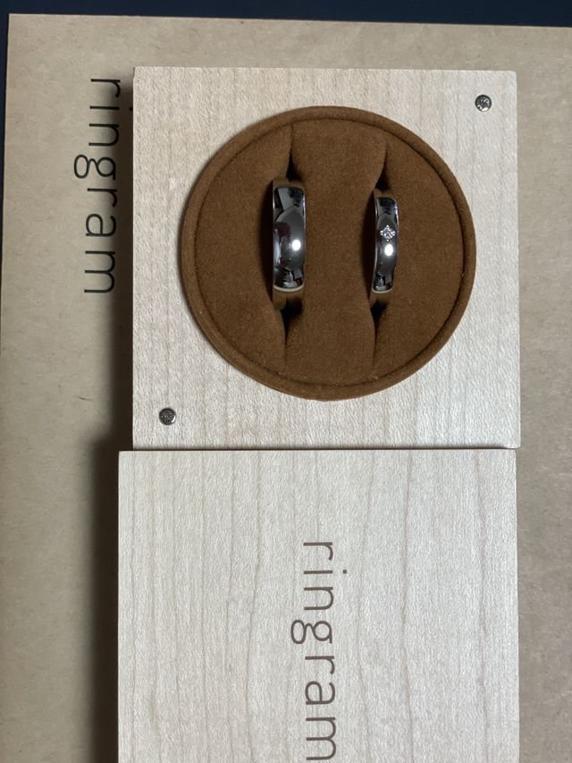 私の分は、ダイヤを入れてもらい、指の裏側にいくほど少し細くなるデザインで、旦那の分は、少し幅のあるシンプルなものにしました。