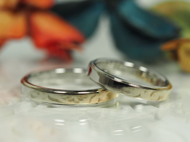 AUROAという、世界でココにしかないという技術の指輪を選びました。一つのリングで色の組み合わせが選べるといい、独特の色合いのグラデーションと輝きが生まれるという魅惑的な特徴に心をもっていかれました。一つのリングでグラデーションが見れるのはとても綺麗です。