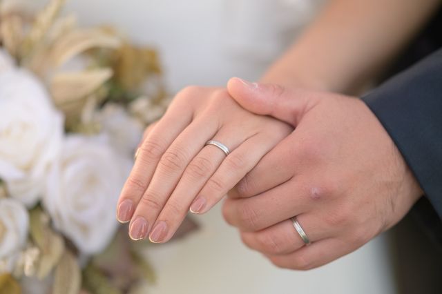 私たちは、立体的になっていてつけているときに他の指にあたるのが苦手だったので、平打ちなものに絞って探していました!あまり流行りに乗らないもので長くつけられるものがいいなと思い、でも他の人と被らないもの。ということでセミオーダーできるこちらのリングを選びました!