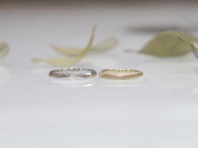 普段つけているアクセサリーが彼はシルバー、私はゴールドだったので他のものと一緒につけられるようにお互いそれぞれの色で探していました。オーダーメイドで作ってもらい、デザインは違いますが2人ともマット素材にし、表面に加工をつけてもらうなどお気に入りのものを作っていただくことができました。