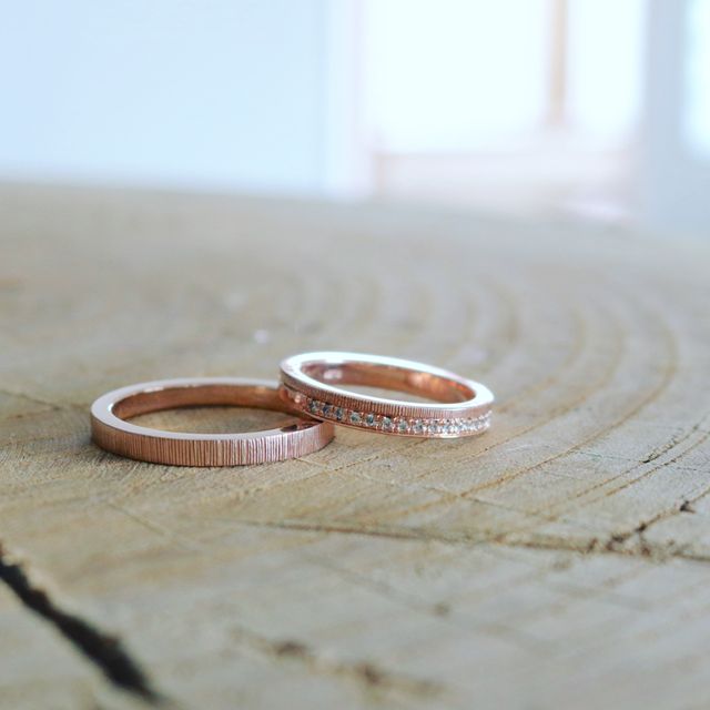 自分たちのデザインをそのまま形にしていただけました。完成品にとても満足しています。完成した指輪を保管できる桐箱もとても気に入っています。結婚指輪を常に付けているので傷が心配でしたが、アフターケアもとても充実した内容でした。