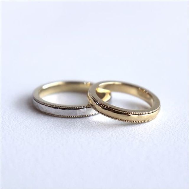 2種類の加工を使用していて見た時にとてもおしゃれだと思ったので選びました。色の組み合わせもお好みで選ぶことができたので、お互いに好きな組み合わせでつくってもらうことにしました。とても気に入っています。