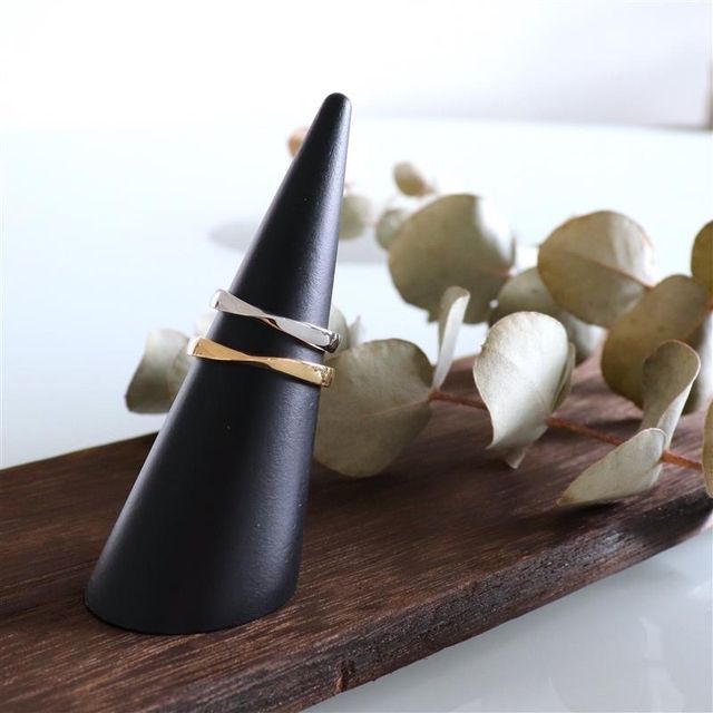 婚約指輪と重ね付けに相性の良いデザインにしたいと思いこのデザインにしました。ひねってくびれた部分が、婚約指輪のダイヤモンドとの重なりがとてもよかったのが決めてでした。