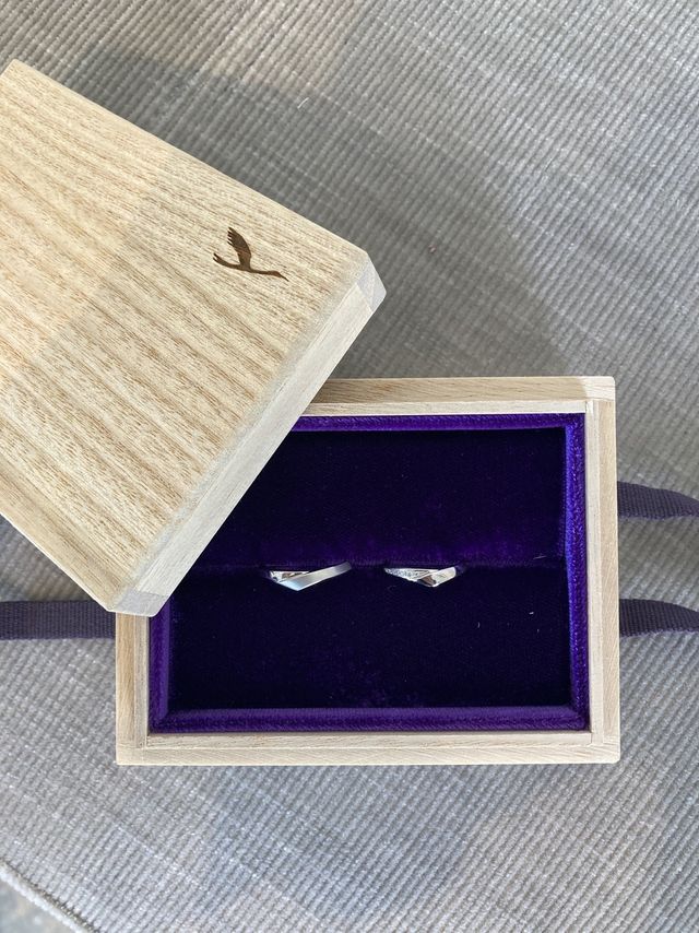 ゆるやかにフォルムがとても可愛くて二人決めてお作りしてもらいました。シンプルで好みなデザインでつくってもらいとても満足しています。高級感あふれる桐箱に入っており、華やかさが演出できていてとても良かったです。