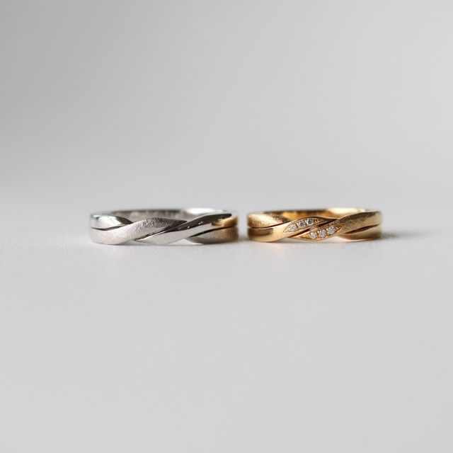 指輪のデザインはギメルリングという2つの指輪を重ね合わせたようなデザインをベースにオーダーしました。