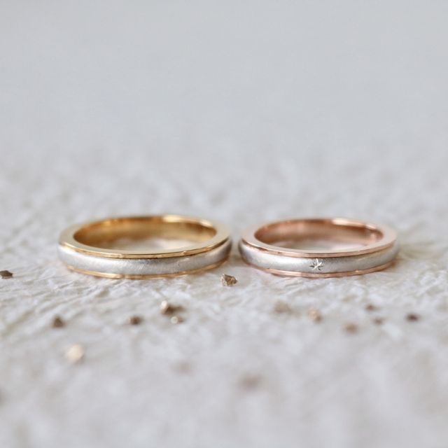 実際に私たちの指輪も夫婦で色味を変えてみたらどうかと提案を受け、実際に完成品を着けてみると夫婦でお互いの指に合ったデザインになっているなと本当に感動しました。
