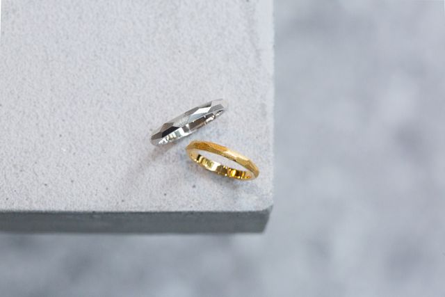 マットな質感はあまり見たことがなく、どうだろう?と思いましたが、付けてみてとても気に入りました。新しさや2人だけのオリジナル感があり、こちらの結婚指輪に決めてよかったです。