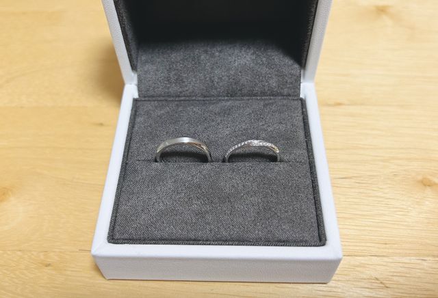 男性の指輪は艶消し加工も選択でき、キラキラしすぎず普段使いしやすいです。