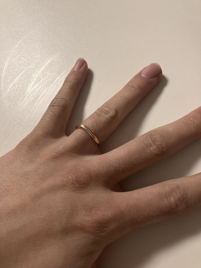 とても指に馴染む形で、カラーもピンクゴールドとし日常使いがとてもしやすいです。