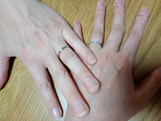 とてもキラキラしていて気分が上がります。普通のノーマルな結婚指輪というより、オシャレなのがいいな、と思っていましたら店員さんから私の想いにピッタリのを出してきてくれました。さすが店員さんでした。選んで良かったです!