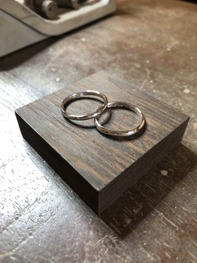 お互いの指輪を製作しました。プラチナ、ゴールド、ピンクゴールド、シルバーの4色から選べ、形や素材も何種類かありオリジナルのリングが製作できます。最後に文字や数字の印字もしていただけるので良かったです。