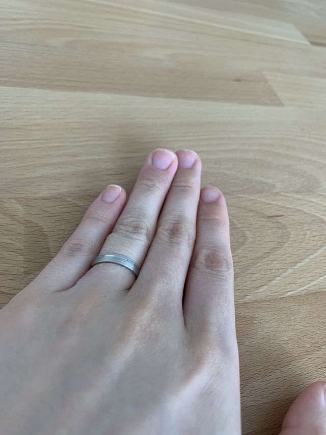 夫が他人と被らないものが良い、艶消しのものが良いという希望だったのですが、全体的に艶消しのリングでは婚約指輪と重ね付けした時の雰囲気が合わず、悩んでいた際に、こちらだと艶消しと艶の部分と両方あるのでが良くて即決しました!