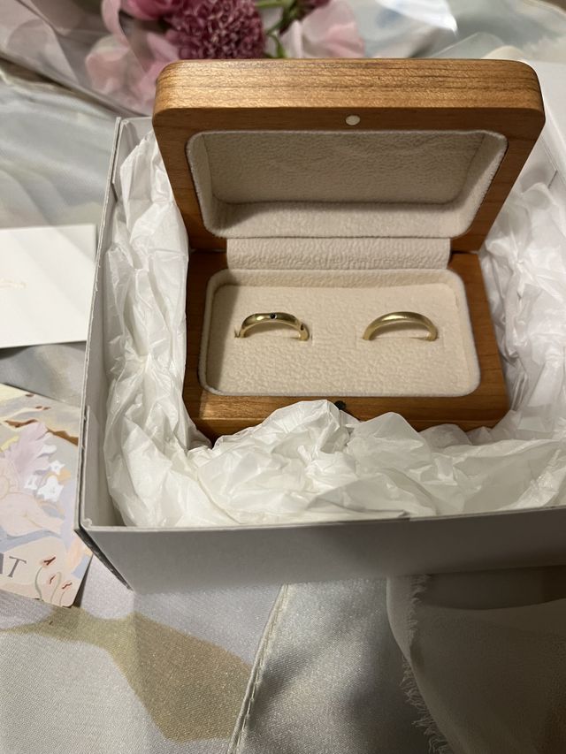 ペアで同じようなデザインの方がいいのかなと思っていましたが、それぞれ別のデザインでも違和感なく着けることができるのが嬉しいです。