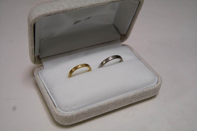 結婚指輪としてシンプルだが、ちょっとしたアクセントのあるものが欲しかったので、和彫があるものを選んだ。新婦側はダイヤモンドを埋め込んだり、ミルグレインを入れたりと装飾性はあるが派手になりすぎないデザインにすることができた。