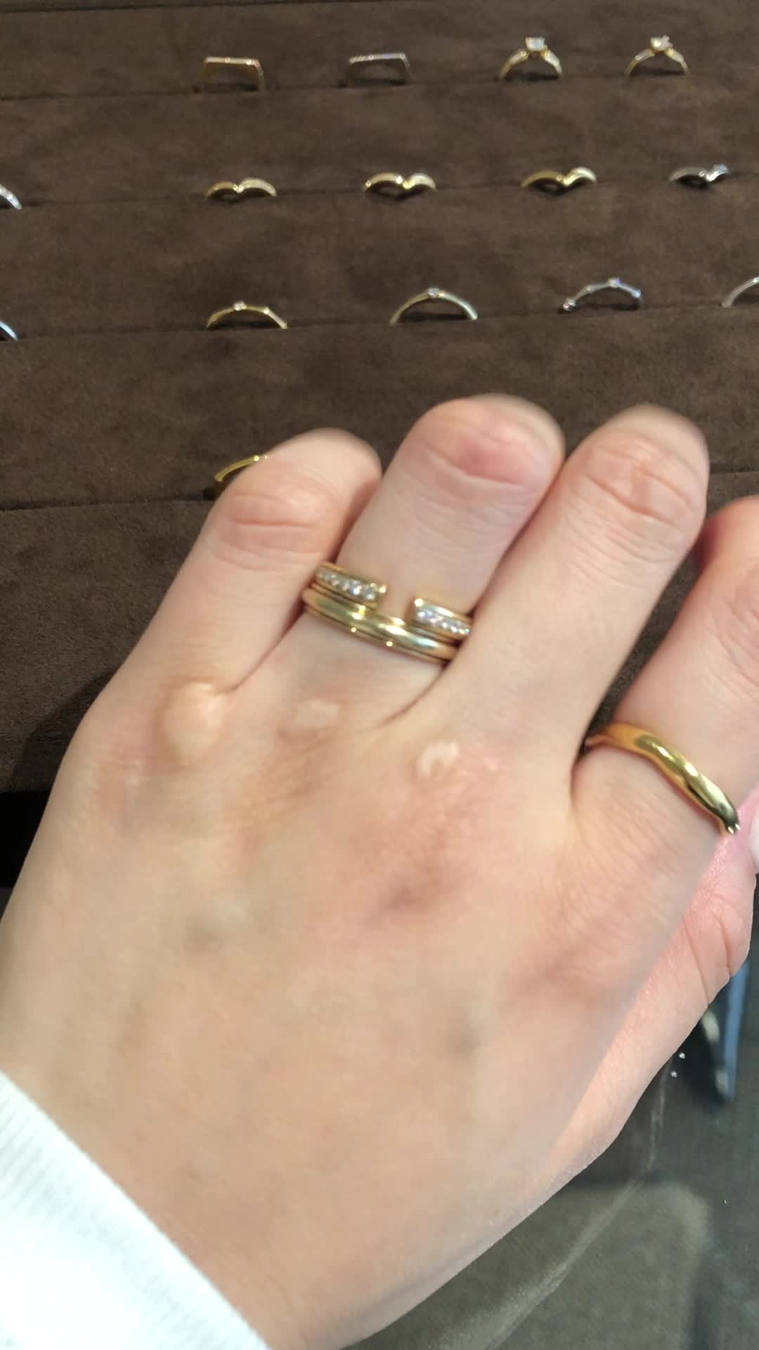 シンプルで洗練されたデザインで日常使いにもおすすめです。3連のようなデザインが他になくて魅力だと思います。その分、金額もハイブランドと変わらないので、悩んだポイントでした。重ね付けもとてもかわいいです。