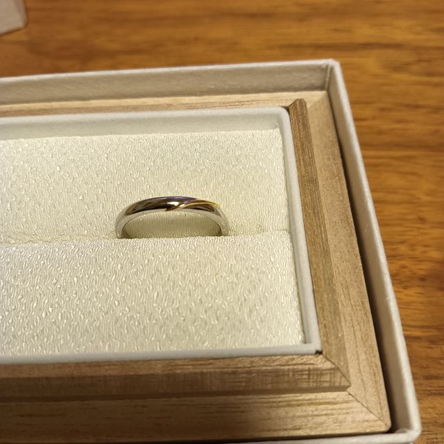 プラチナベースにイエローゴールドの曲線デザインがワンポイントであしらわれていて、他のブランドの指輪ではなかなかこれに近いデザインの物がなく、