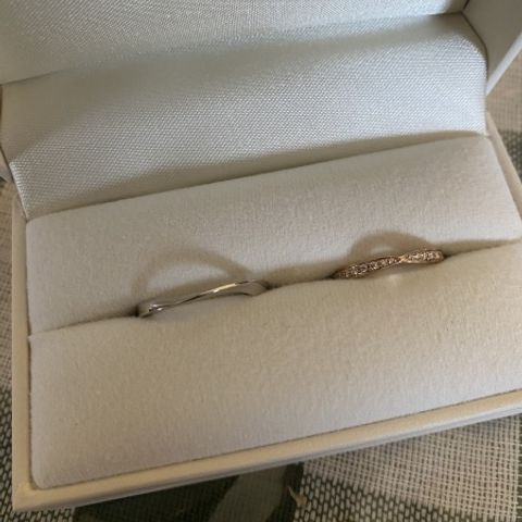 普段遣い出来るようにらシンプルなデザインを望みながらも、エレガントな雰囲気が出るように彼女の方にはダイヤを入れて頂きました。 また、婚約指輪と二つ付けた時には合わさってエレガントに見えるのが素晴らしいです。