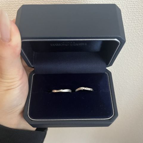 ダイヤが思ったよりも大粒で存在感があり、自然光でもかなりキラキラ輝いてくれます。 男性の方は、マットな部分がチャームポイントになり、一癖あるリングです。どちらも新しく人気のデザインだそうで、一眼見た瞬間から気に入りました☺︎
