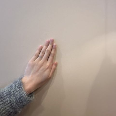 来店する前からいいなと思っていた指輪を、実際に着用させていただきました。他のデザインも見せていただきましたが、あまり悩まず今回のデザインに決まりました。ダイヤが斜めに入っているので特別感もありつつ、ギラギラしすぎないので普段使いもできそうで気に入っています。