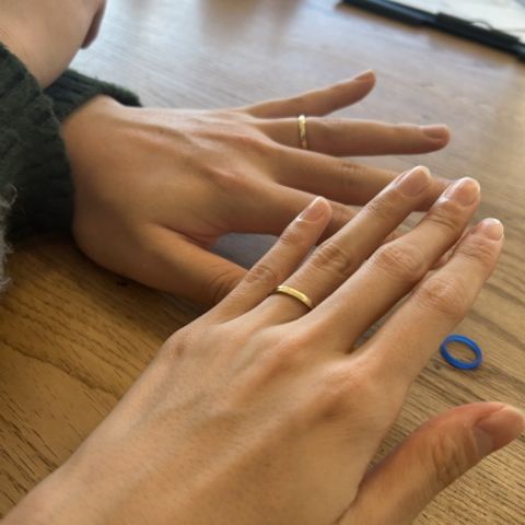 私たちはシンプルなデザインで探してました。そこでブランドやデザインにこだわりがない私たちは手作りで思い出に残る結婚指輪を作ることに決めました。結果とても楽しくて、写真や動画も撮ってくださり、ここにしてよかったなと思いました。