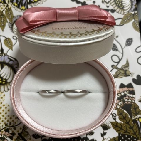 マット素材でとてもシンプルな指輪を選びました。普段使いであまりキラキラしてないのがいいとお互いで話し合い選びました。皆と被らないようなデザインで価格予算以内でとても気に入りました!(#´ᗜ`#)!!!