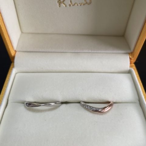 男性用はロータス、女性用はライラックをベースに幅の変更や、石の個数の変更を行い、自分好みにカスタマイズしました。シンプルながらも他には無いデザインで気に入っています。着け心地もよく、長年愛用していきたいと思います。