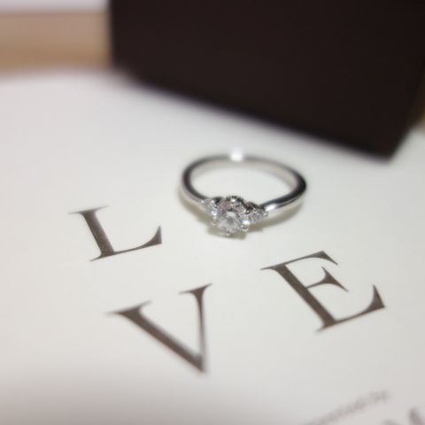 左右に小さいメレダイヤが3つずつ配置されています。 ここのブランドの指輪は全てはめ心地が良いように設計されているようで、私は婚約指輪もずっと日常的にはめて過ごしていますが、何の違和感もなくつけることができています。特に気にいっているポイントはダイヤモンドです。数あるダイヤモンドの中から自分の価格と希望に近いものをいくつかピックアップして出してくださり、そのなったら自分たちの目利きでどれが良いかを決めます。 もともと予算内で決めているものなので、その中で最もきれいに思うダイヤを 価格のことを気にせずにセレクトすることができました。