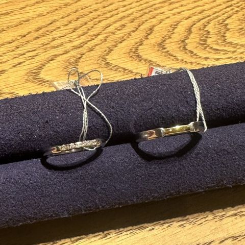 シンプルで常に使いやすい、だけどありきたりではない良いデザインで、どことなく和の雰囲気もあって気に入っています 素材事に加工も変えて頂けて、夫婦それぞれで個性を出せるのも素敵でした 良い指輪に出会えたと思っています